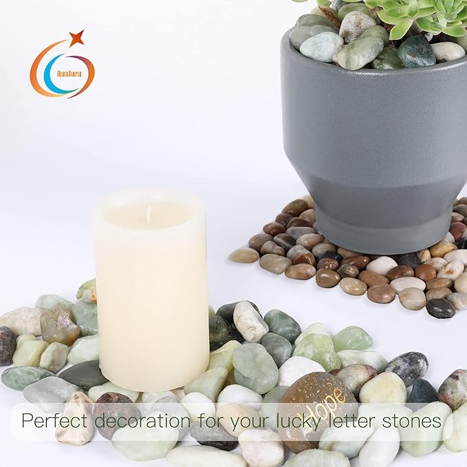 - 【Engraved Rock Included】 There is one engraved rock with different words of inspiration in per bag. Ausluru polished pebbles are engraved with Different Words of Encouragement. Inspiration stones are engraved with care so it will last many years.