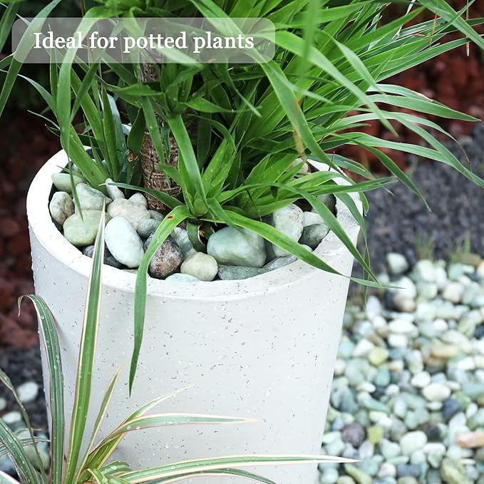 - 【Color and Size】Ausluru river rocks medium size range in length approx from 1" to 2". They are natural and as a result some may be broken or out of shape, oval or round, thick or thin. The color of this river rock is natural so it may include a variety of different shades of black/white. Weight: 5 pounds.