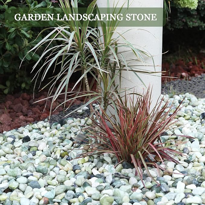 - 【Natural Rocks Stones】Ausluru river rocks are high quality and non-toxic and eco-friendly. Decorative rocks are a permanent and cost-effective alternative to annual wood mulching. Their natural attribute will make them last longer because they will not deteriorate like mulch does. After being immersed in water, nothing will float, and the color will not fade after a period of time.