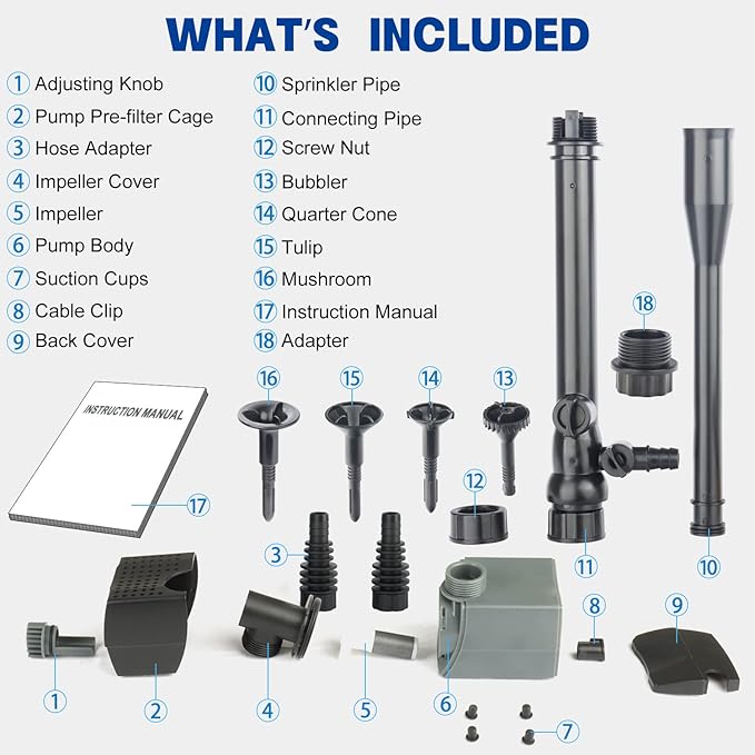 - Easy to Maintain: This submersible pond pump can be fully detachable,no tools necessary for disassembly. So this fountain pump is very convenient and easy to clean. You do not need to take too much time on maintenance.