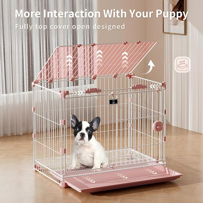 Dog Crate for Medium Dogs,30 inch Metal Dog Kennel Indoor Wire Dog Cage with Sliding Door and Removable Tray,Open Top Pet Crate for Medium,Pink