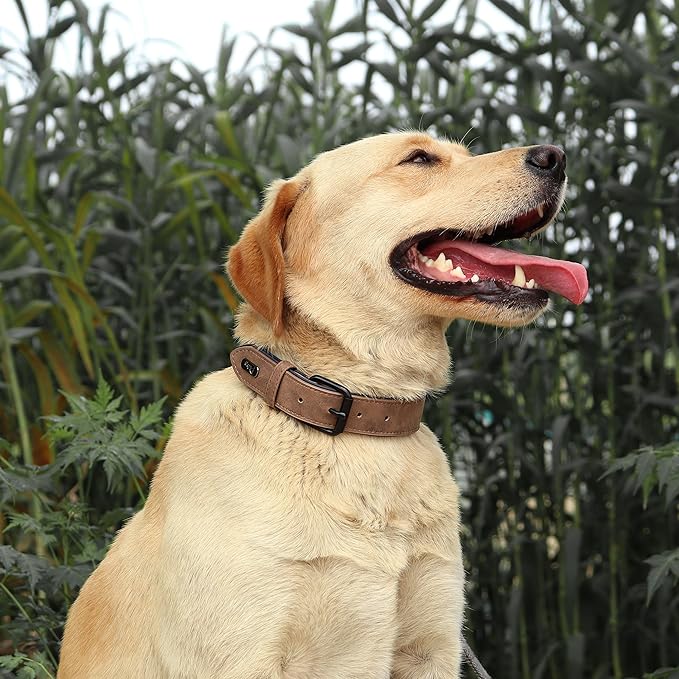 - DOG COLLAR FOR LARGE DOGS: The brown collar fits neck 17-21"(44-71 lbs), pls measure your dog's NECK SIZE leaving two fingers room, and carefully check the size chart. Suitable for Chihuahua,german shepherd,Terriers,Pitbull,Poodle,Shiba Inu,Husky,Boxer,Pug,Labrador Retriever,Golden Retriever,etc.