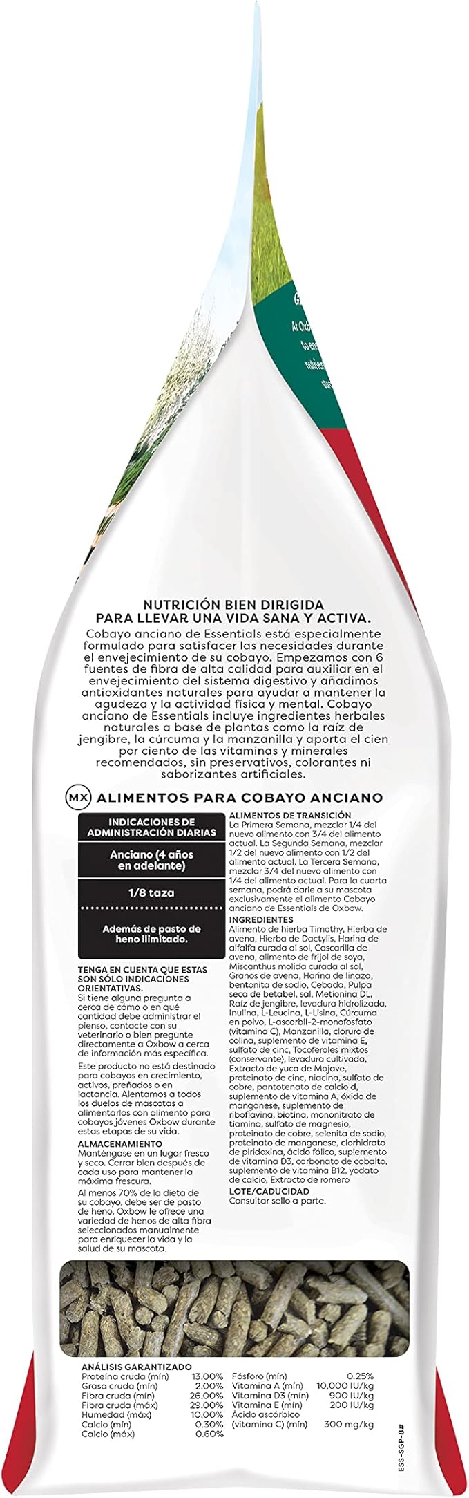 - COMPLETE VITAMIN & MINERAL SUPPORT: Oxbow Senior Guinea Pig delivers 100% of the essential vitamins & minerals guinea pigs need, including stabilized Vitamin C in every pellet; a clean senior cavy diet with no artificial colors, flavors, or preservatives
