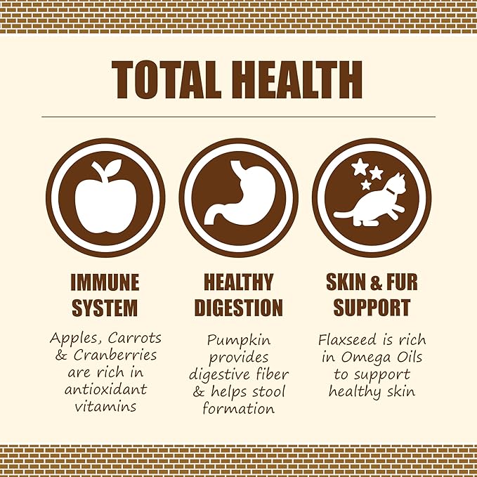 - REAL FOOD FOR REAL LOVE: Treat your pet with our Whole Health Formula - because they're family, too! Packed with protein and a delicious puree of pumpkin, apples, flaxseed, carrots, and cranberries, this wet cat food is a nutritious hug in a bowl.