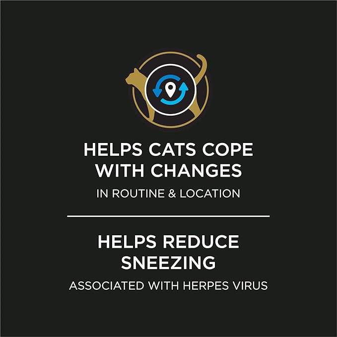 - Supports cats’ ability to cope with changes in routine and location, relieves cat stress and supports positive behaviors such as playing and seeking out social contact