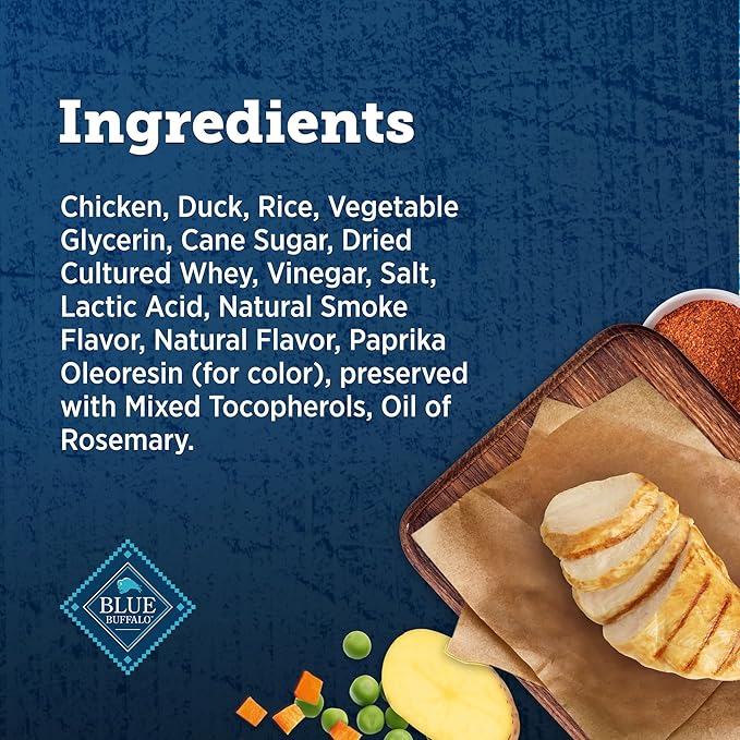 - REAL CHICKEN and DUCK: These Blue Buffalo dog treats are made with real chicken and duck for a taste dogs just can't resist