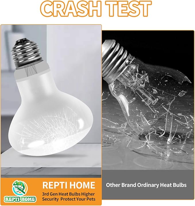 - Technical Innovation - REPTI HOME is committed to the research of technology, continuous innovation in the reptile heat lamp, and has undergone professional tests repeatedly to achieve the best results. Our heat lamps have been fully upgraded and added explosion-proof coating, which is safer than other brands of ordinary heat lamps and can better protect your pets.