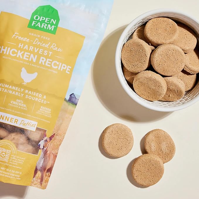 Open Farm, Freeze Dried Raw Dog Food, Patties with 95% Meat, Organs & Bone, Complete Meal or Freeze Dried Dog Food Mixer, Chicken Recipe, 10.5oz Bag