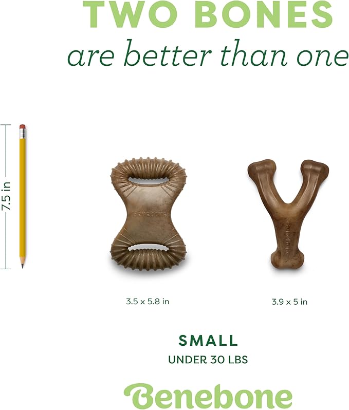 Benebone 2 Count (Pack of 1) Wishbone/Dental Durable Dog Chew Toys, Real Bacon, Made in USA, Small