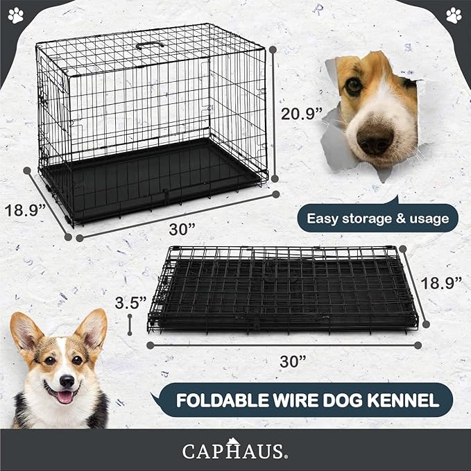 CAPHAUS Foldable Dog Crate Wire Metal Dog Kennel w/Leak-Proof Pan & Protecting Feet & Divider Panel, Single or Double Door, Small, Medium & Large Dog Crate Indoor Cage, 30” w/Single Door