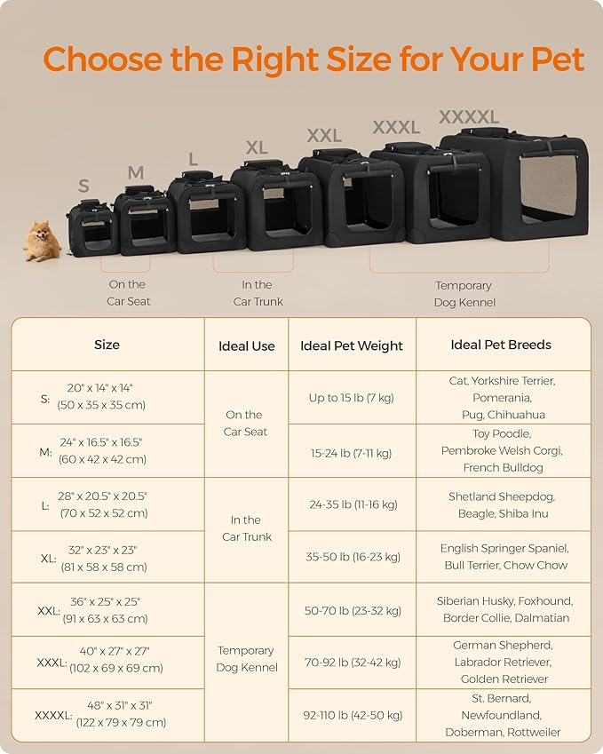 - 【CHOOSE THE RIGHT SIZE】This 40" x 27" x 27" collapsible dog carrier is ideal for pets between 70-92 lb. Please read our tips on the pictures to measure your pet and choose the right size