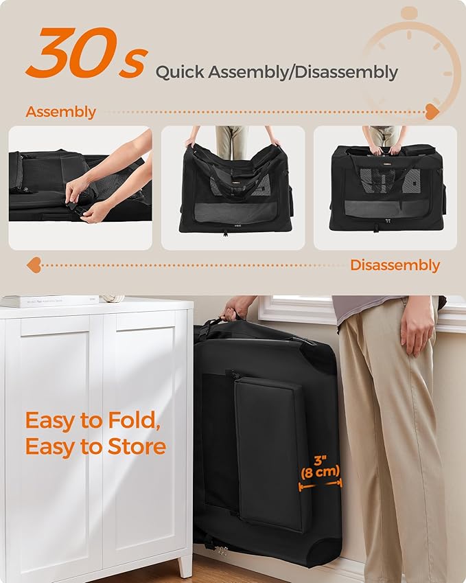 - 【ANTI-ESCAPE & STRONGER】Featuring self-locking zippers that ensure pets can't open it from the inside, the travel dog crate enhances safety while traveling. The thick steel frame and Oxford fabric are scratch- and tear-resistant for prolonged service life