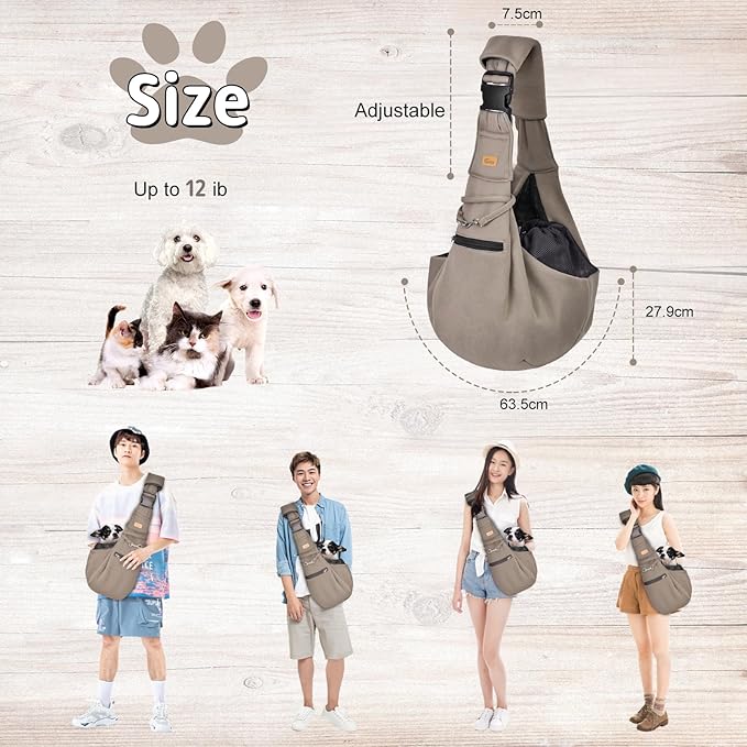 CUBY Dog and Cat Sling Carrier - Hands Free Reversible Pet Papoose Bag - Soft Pouch and Tote Design - Suitable for Puppy, Small Dogs Cats Outdoor (Khaki Senior, Adjust Strap 2.0)โฆ