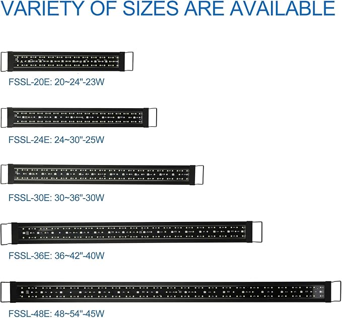- Built-in Timer: You can set your desired time period by this mode.This fish tank light has a 6,8,10 and 12 hour Timer setting. The light will be off except setting time to avoid algae and also good for energy-saving.