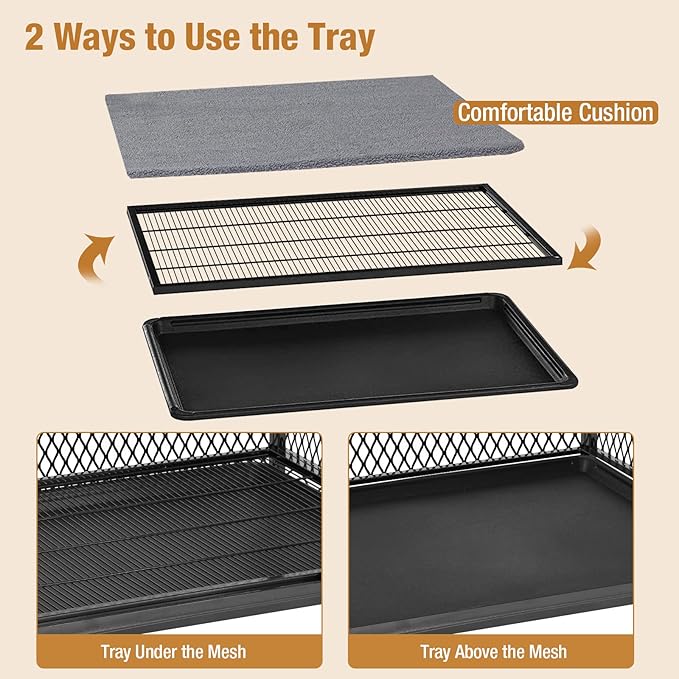 - 🐶 [2 Ways to Use the Tray] Put the tray under the bottom mesh to catch crumbs, fur, and dirt, keeping your dog's place clean without dirtying your floor, or place the tray above the mesh to offer your dog a flat, comfortable surface—it's up to you.