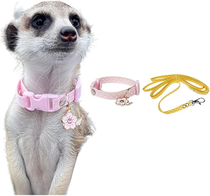 Ferret Collar Harness and Leash Adjustable, Soft and Breathable Ferret Lead Leash with Cute Designed Collar (Pink)