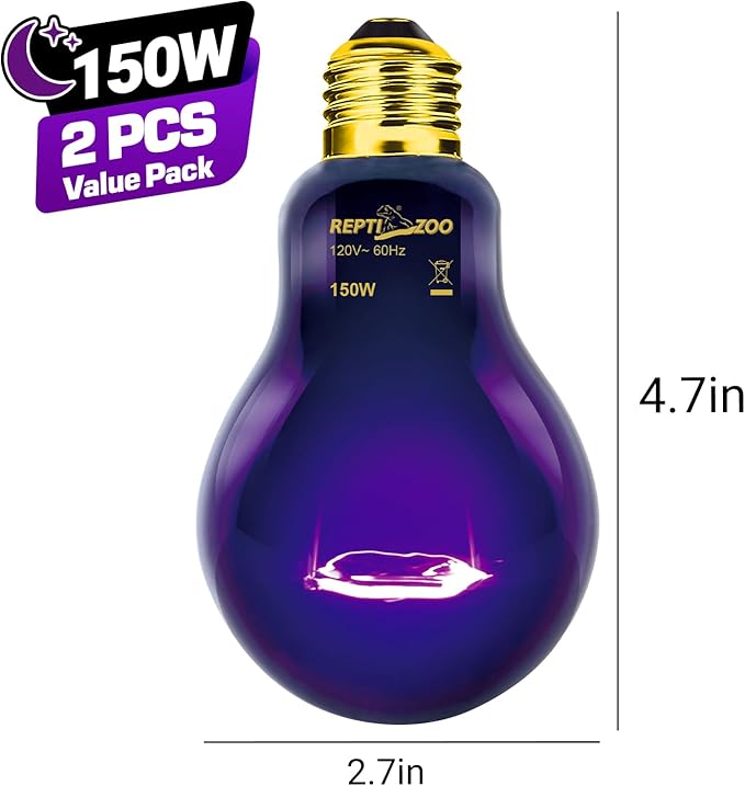 REPTI ZOO 2PCS Reptile Heat Lamp, 150W Night Heat Bulb Moonlight Bulb Purple Infrared Heating Lamp Simulate Natural Moonlight Night Heat Bulb for Reptile Amphibian