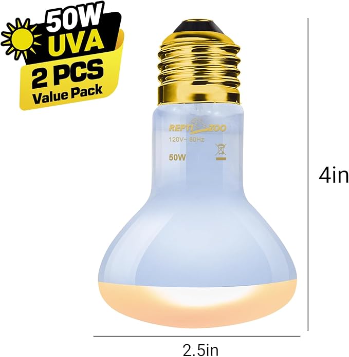 REPTI ZOO Reptile Heat Lamp, 2 Pack 50W Daylight Basking Spot Lamp for Reptiles UVA Daylight Heating Lamp Bulb Basking Light for Bearded Dragon, Tortoise, Geckos, Chicken