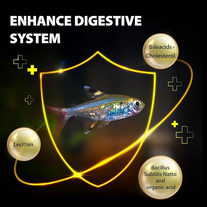 - Crystal Clear Tank: With our small tropical fish food, you will see the positive effects on both the fish's healthy and water quality. Using our speciality feeds (Specially added probiotics---Bacillus subtilis natto sourced from Japanese natto) can create a good ecological cycle, which helps to reduce fish waste and maintain the water quality.