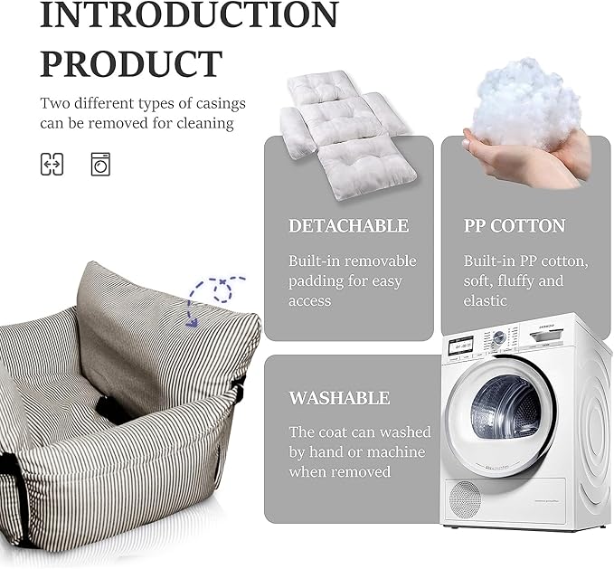 - 【Care instructions】 We added zippers and velcro to the corners of the dog bed to remove the pillows that fill the interior. You can just throw the dog car seat cover in the washing machine. If you feel that the seat is overstuffed, simply unzip the zipper and remove some stuffing to adjust the firmness to your liking.