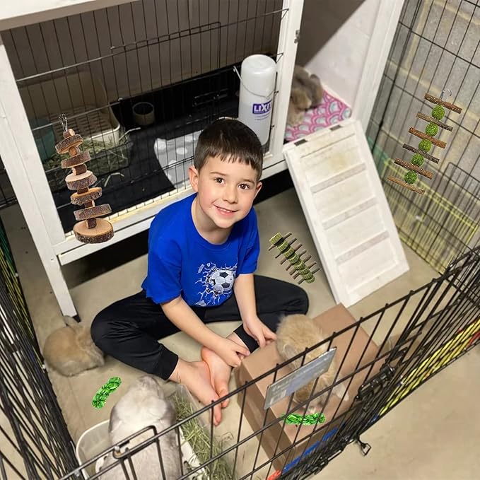 - 3.【Hanging Decorations & Molar Toys】:Rabbit toys for bunnies not only can be used as a toy for your lovely pets to play & exercise,but also can be rabbit hanging snack.Rabbit chew toys can easily arouse the interest of pets. They can also divert attention and help prevent pets from chewing on cages or other furniture.Rabbit bite toy makes their life more exciting, says goodbye to boring, makes your pet's life more enjoyable.
