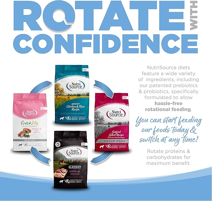 - NutriSource grain inclusive formulas deliver compact nutrition and include prebiotics and probiotics to help support a healthy gut