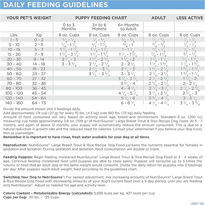 - CONTAINS: (1) 26LB Bag of NutriSource Trout and Rice Dry Dog Food for Large Breeds