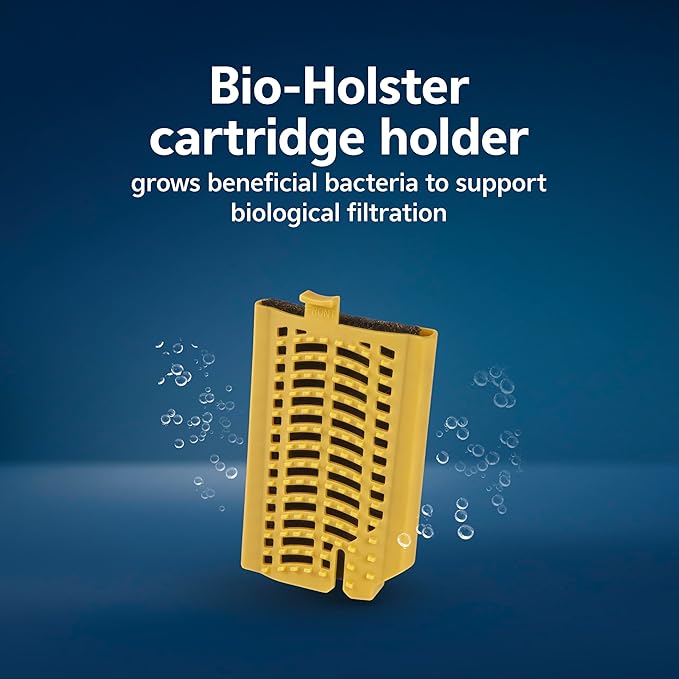- INNOVATIVE FILTRATION: Includes a Bio-Holster cartridge holder for beneficial bacteria to grow and an Aqueon EcoRenew cartridge made from fibers infused with carbon. Auto-start pump requires no priming, automatically restarts if power is interrupted and restored.
