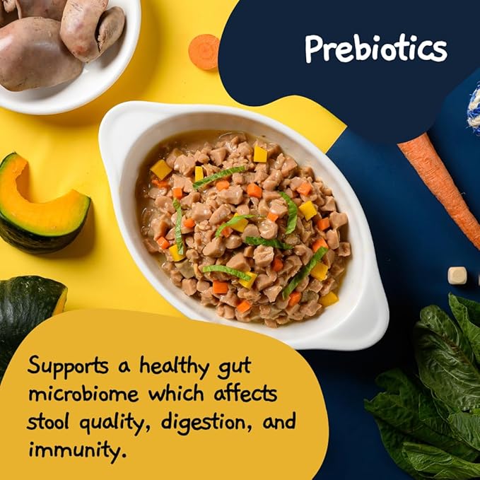 - Prebiotic Benefits: Enriched with prebiotics, our wet dog food for small dogs supports a healthy gut microbiome, enhancing stool quality, digestion, and immune health, helping keep your furry friend active and happy.
