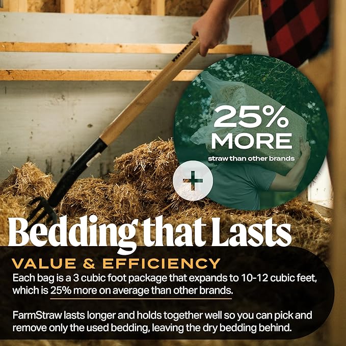 FarmStraw Coarse Cut, 3 cu ft (25 lbs) – All-Natural Wheat Straw Animal Bedding for Homesteads, Hobby Farms, and Small Pets – Absorbent, Fluffy & Insulative – Sustainably Sourced