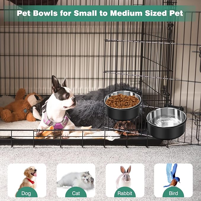 - Durable & Safe: The dog kennel food and water bowls are made from high-quality rust-resistant stainless steel, safe for your pets to use without any unpleasant odors. Besides, stainless steel cannot be chewed, cracked, or broken and tends to be the safest feeding choice for your pet