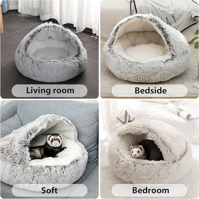 - 【Safety with Cuteness】: Our bed combines comfort and safety in a perfect blend! The self-heating fleece fabric and semi-enclosed design provide a familiar, natural-like habitat. With raised edges for excellent head and neck support, your pets won't ever want to leave!