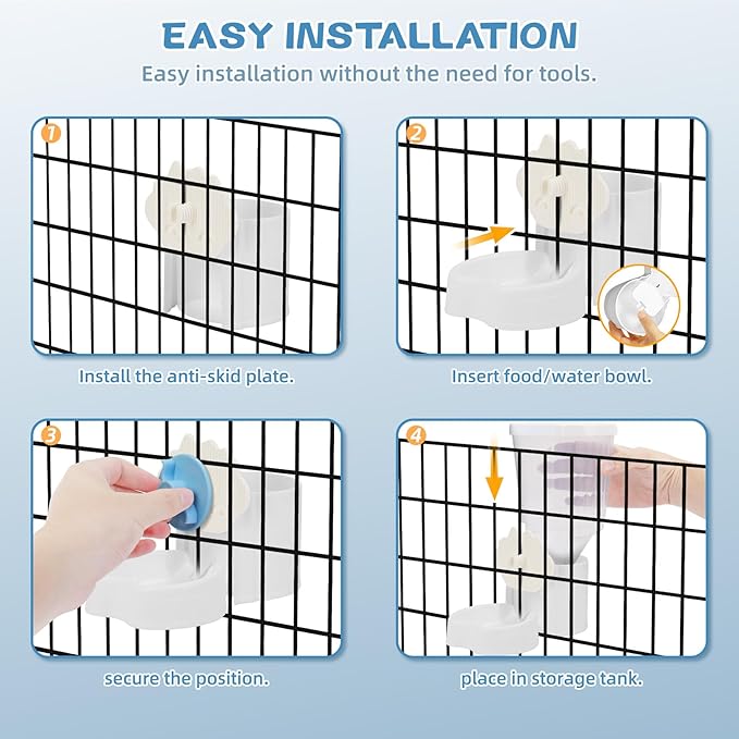- 【Food Water Dispenser Set】 This pet feeder set includes 1 food dispenser and 1 water feeder, suitable for most pet cages. Note: We suggest spacing the cage wire horizontally at over 1.1 inches. If the spacing is smaller than recommended, you can slightly bend the cage wires.