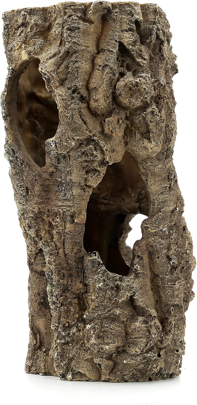 - Made of safe, non-toxic polyresin that will not affect your pet’s health. Designed with the shape of a tree hole, it has the appearance of tree bark and is a very beautiful aquarium decoration.