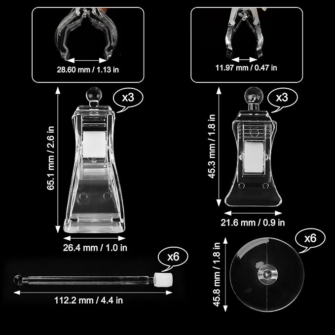 - Good Value Combo: You will receive 6 pack large seaweed clips in total, including 6pcs suction cups(diameter 1.77in ), 3pcs big acrylic clips(2.6 x 1 x1 inch), 3pcs small acrylic clips(1.8 x 0.9 x 0.5 inch), white connectors and sticks. They can be assembled in different ways for different purposes, sufficient for your feeding veggies daily to your fish in the fish tanks.