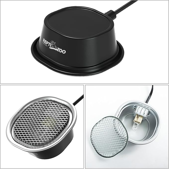 - Aesthetic Design Reptile Fixture: Designed to not only be functional but also visually appealing, easy to put the low profile heat lamp fixture on the top of the mesh lid or hang on the mesh lid, the lampshade adds a touch of beauty to your reptile's habitat. Its sleek and compact design allows for easy installation and saves valuable space in your enclosure.