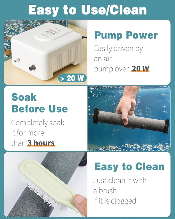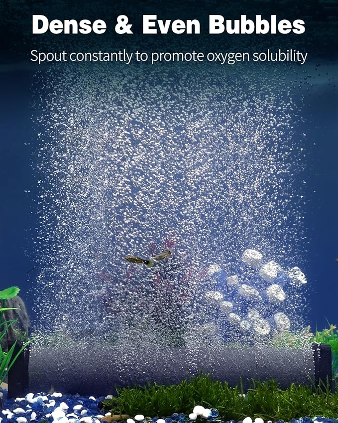 - Stable in Water: The aquarium air stone weighs 34.8 oz and comes with 2 square holders at both ends to increase stability. It always lies stably in the water and won’t move easily when bubbling.