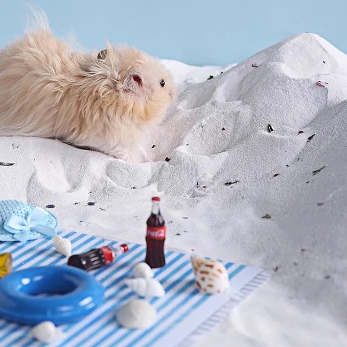 - Natural & Healthy Choice: Made from 100% natural sand, our fine texture sand avoid irritate your hamster's skin or wreck their coat, and the no-dust sand prevent respiratory issues in your hamster. Additive-free product ensures your hamster enjoys a safe and soothing dust bath experience.