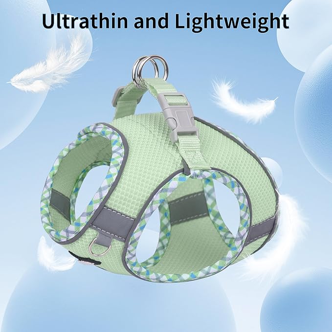 AIITLE Teacup Puppy Harness with Leash - Adjustable Soft Vest with Magic Tape & Reflective Safety Strips, Easy-Put-On for Poodles, Pomeranians - Gym, Hiking, Travel (Sage, S)