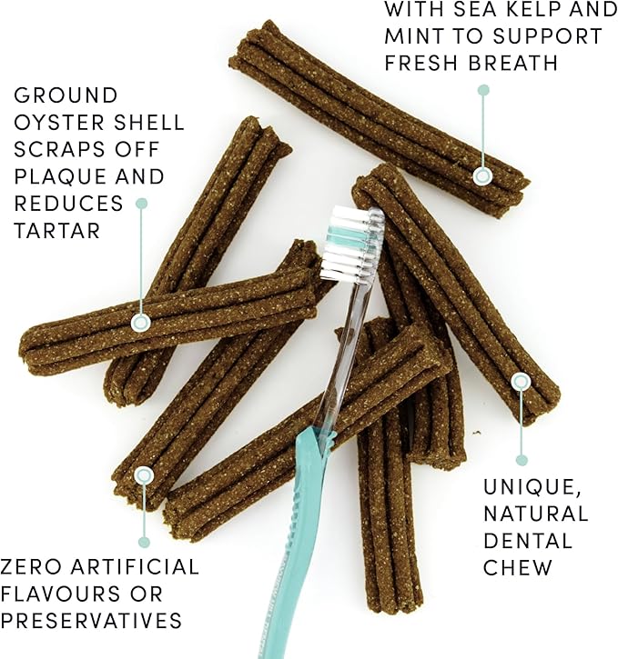 - NEW! With Sea Kelp and Mint to support fresh breath and oral hygiene our advanced dental sticks are a great way to make oral care fun for your dog!