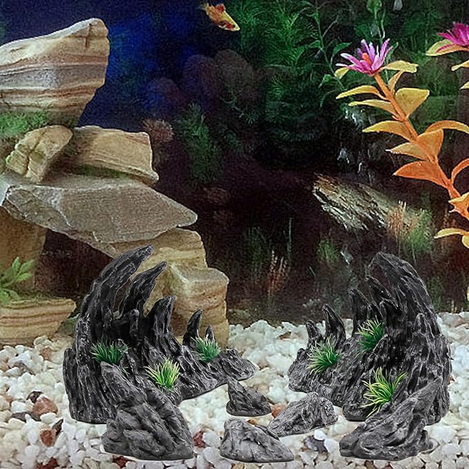 - Package Include: Aquarium rock decorations include 7 parts Resin imitation stone, 2 pcs large 7 x 4 x 4.7 and 5 small stone. suitable for10-20 gallon aquarium or standard scale of 12 - 20 inch aquarium