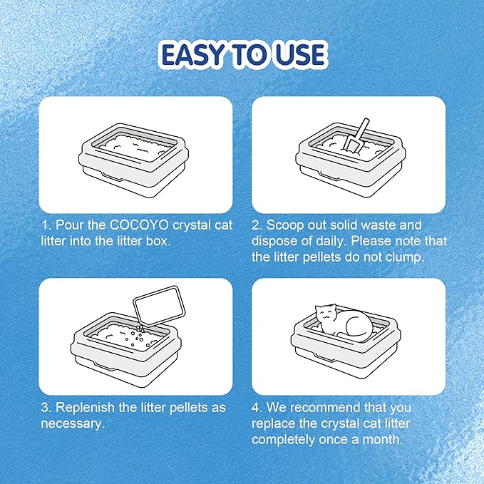 - Less Mess: Crystal cat litter is low-tracking and 99% dust-free—designed for all the days you don’t want to sweep the laundry room floor. Silica Gel micro crystals provide maximum comfort on cats' paws and powerful clumping for easy scooping and a refreshing litter experience.