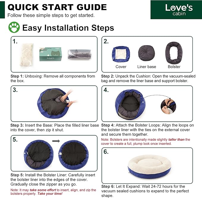 - Design Features: Love's cabin dog beds feature nest-like walls, round pet bed offers a safe, warm cozy place for large dog to snooze.In order to better maintain the shape of the donut nest,our interior filling is 25% more than most competition.