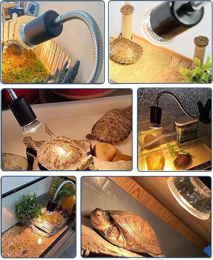 - 【Reptile UV Bulbs】 The turtle basking light provides two E27 bulbs: 25W & 50W, UVA can simulate direct sunlight and promote food digestion; UVB can promote calcium absorption and help pets grow.