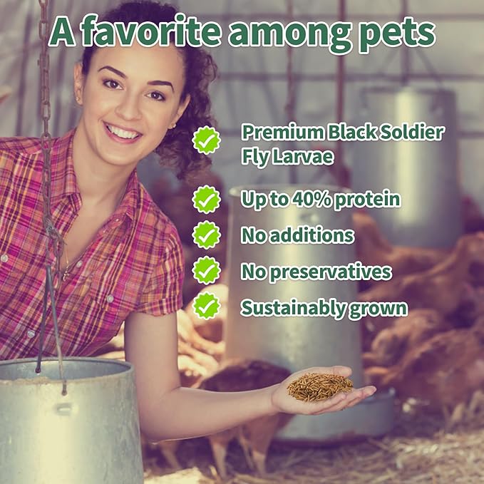 - Black Soldier Fly Larvae is rich in calcium than meal worms, more calcium and protein, this high protein treats allows your chickens to eat healthier, lay bigger eggs and produce more, are superior snacks for hens,bird seed