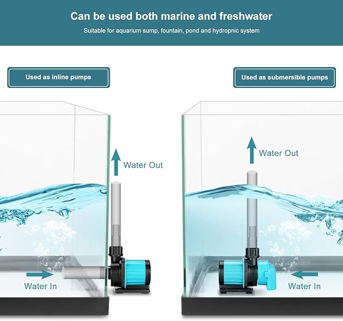 - Ultra quiet aquarium water pump:used seal impeller and ceramic shaft,efficient and quiet operation, nosie level lower than 30 dba;