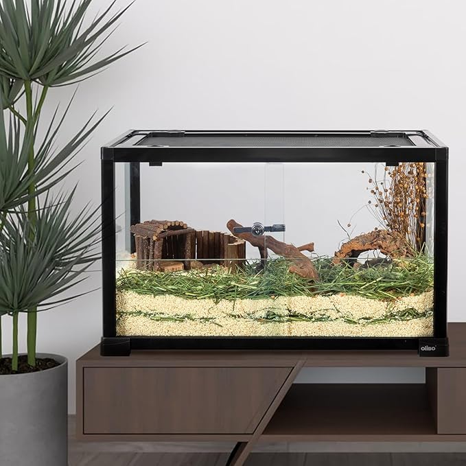- 【2 IN 1 Front Glasses Doors】Patented design 24" x 16" x 16" full glass terrarium with 4"&7" two different height front glasses, great for different needs. A flexible feeding cage for your reptile or small animal pets as hamster, guinea pig, gecko and bearded dragon.