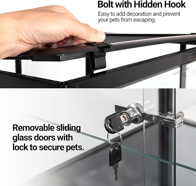 - 【Front Sliding Doors】This young lizard habitat makes it easy to open the front doors and easy for daily maintenance, feeding, interacting with pets and the safety lock prevents escape.