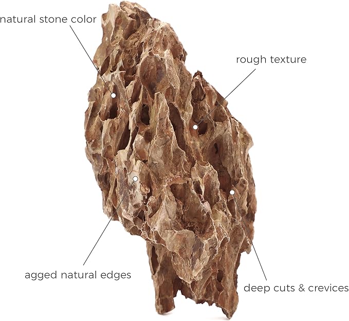 - UNIQUE NATURAL TEXTURE & COLOR: Each natural dragon stone features a distinctive scale-like texture and earthy color, adding depth and visual interest to your aquarium aquascaping. Its porous structure and crevices are perfect for crafting realistic, natural-looking underwater landscapes. You can explore more possibilities in aquascape designs with our aquarium rocks.