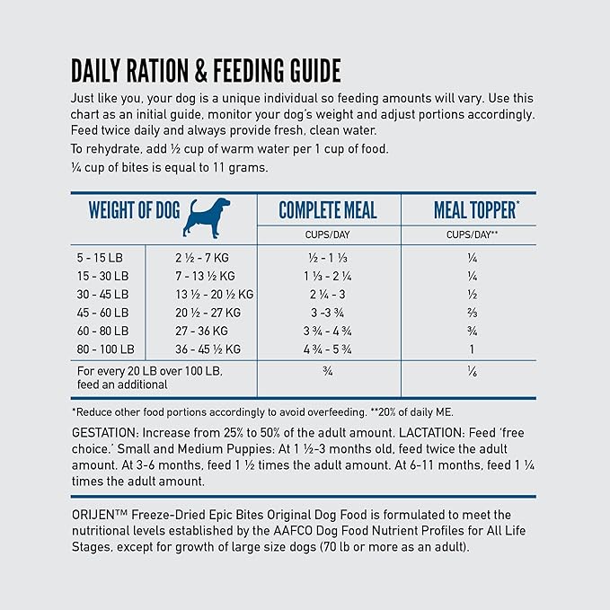 - Add freeze-dried dog food on top of their favorite ORIJEN kibble for a flavorful and nourishing dog food topper.